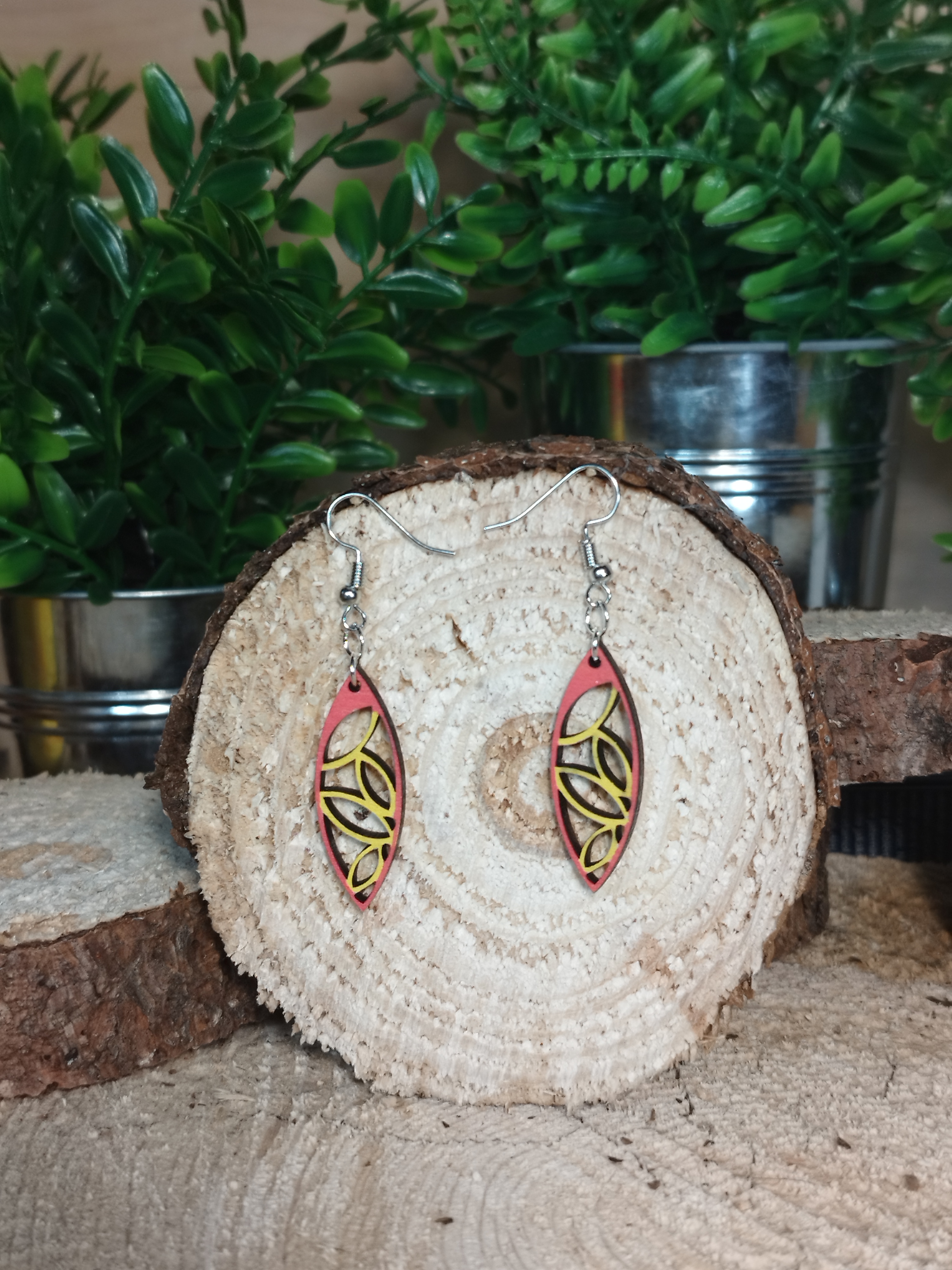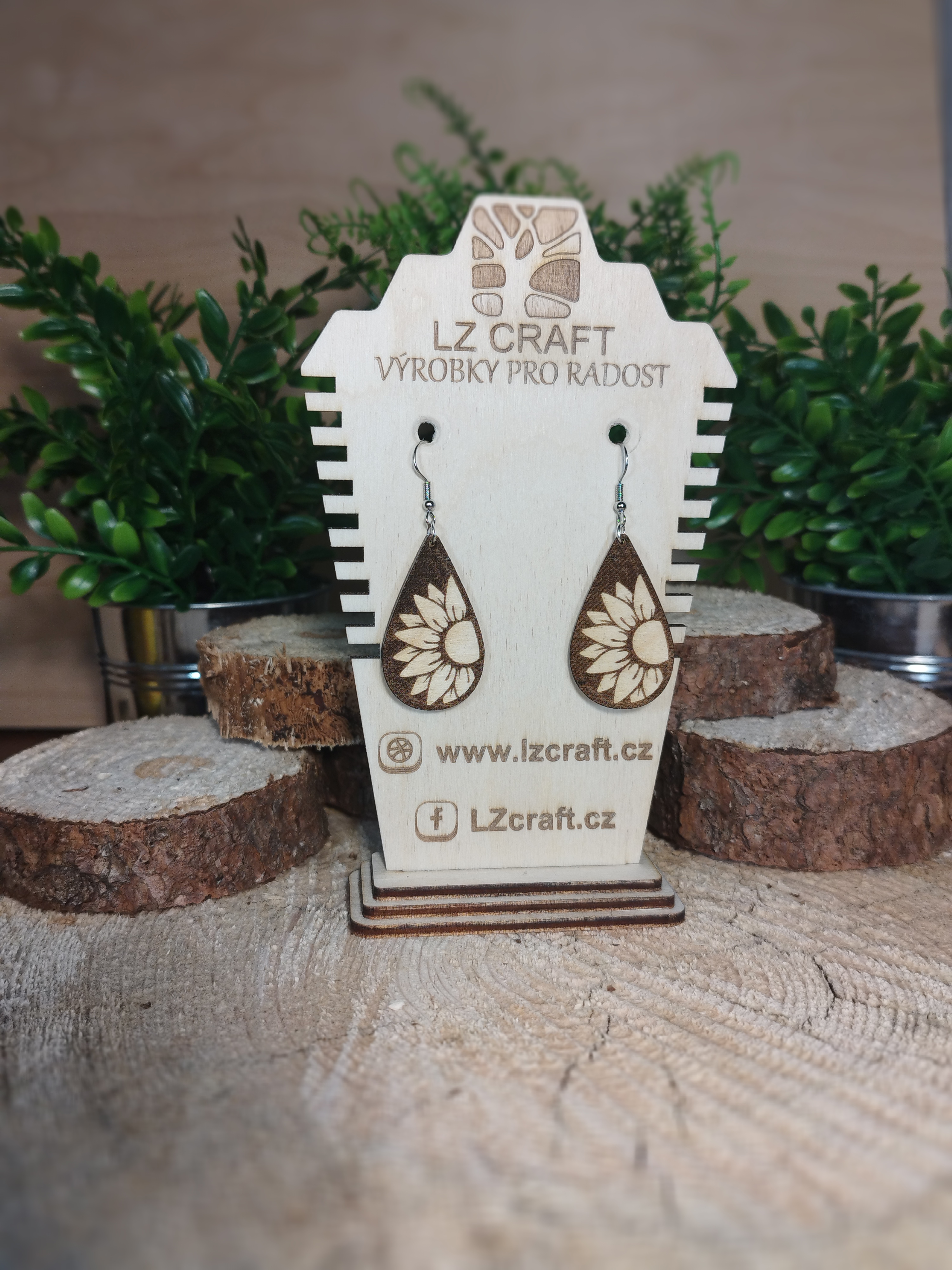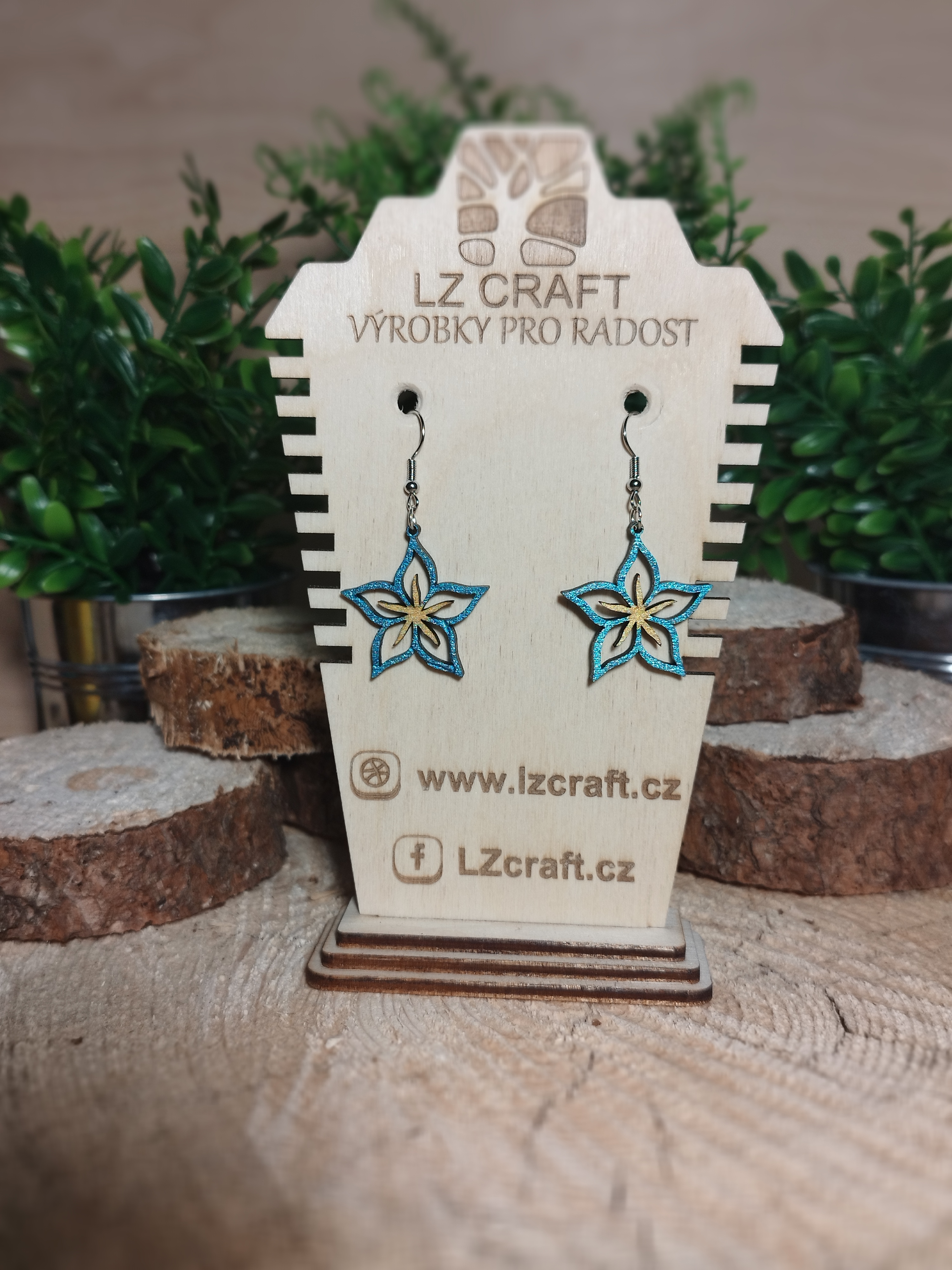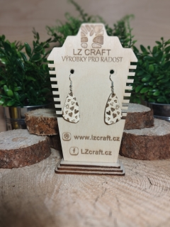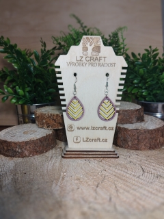 Náušnice jsou vyrobeny z kvalitní překližky a ručně malované akrylovými barvami. Každý pár je originál a může se lišit v detailech. Náušnice jsou poté ošetřeny bezpečným lakem, který dodává barvám hloubku a chrání dřevo před vnějšími vlivy.