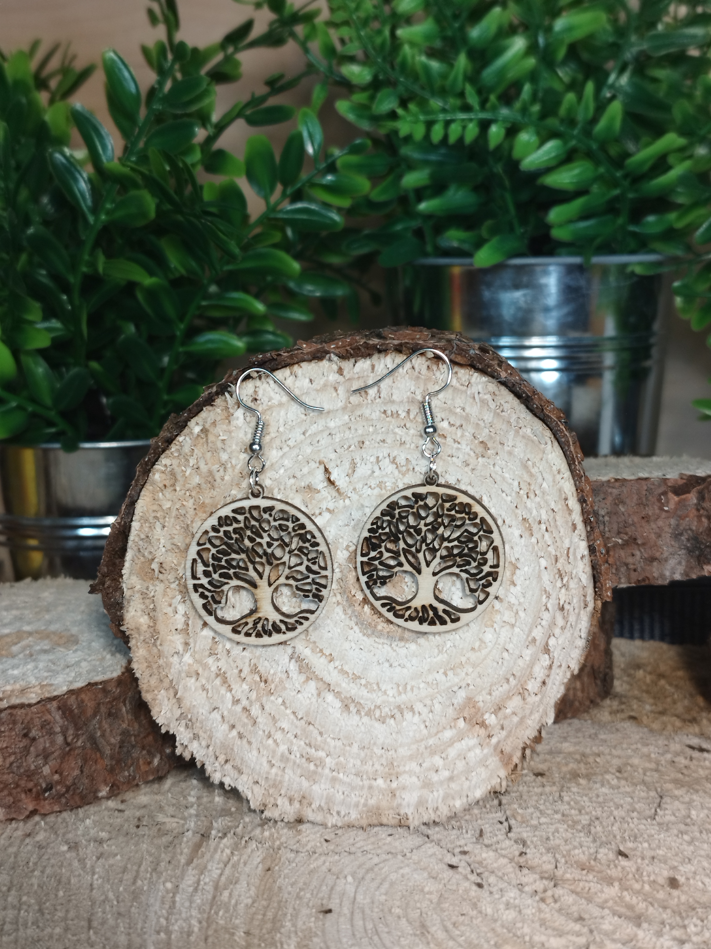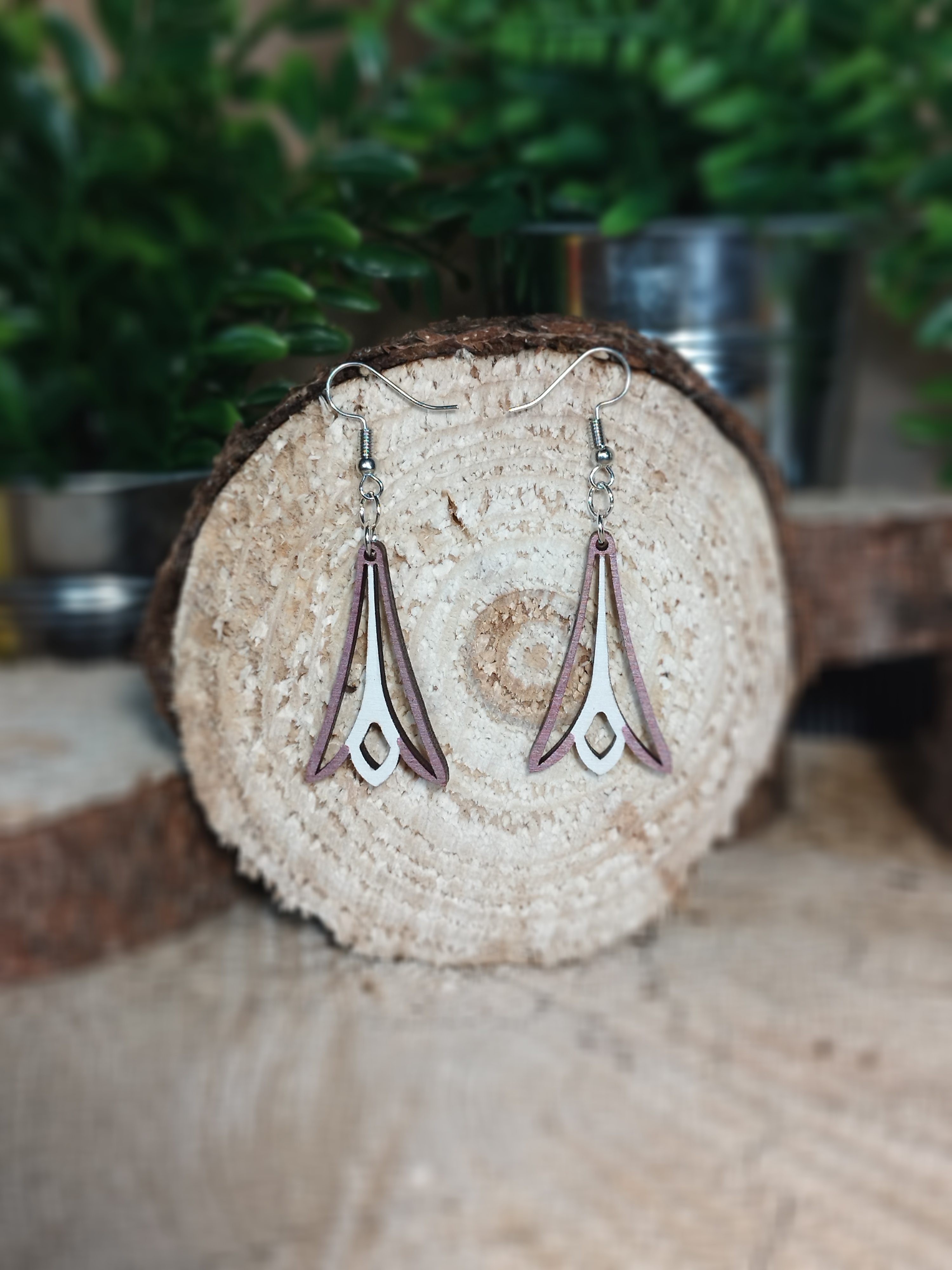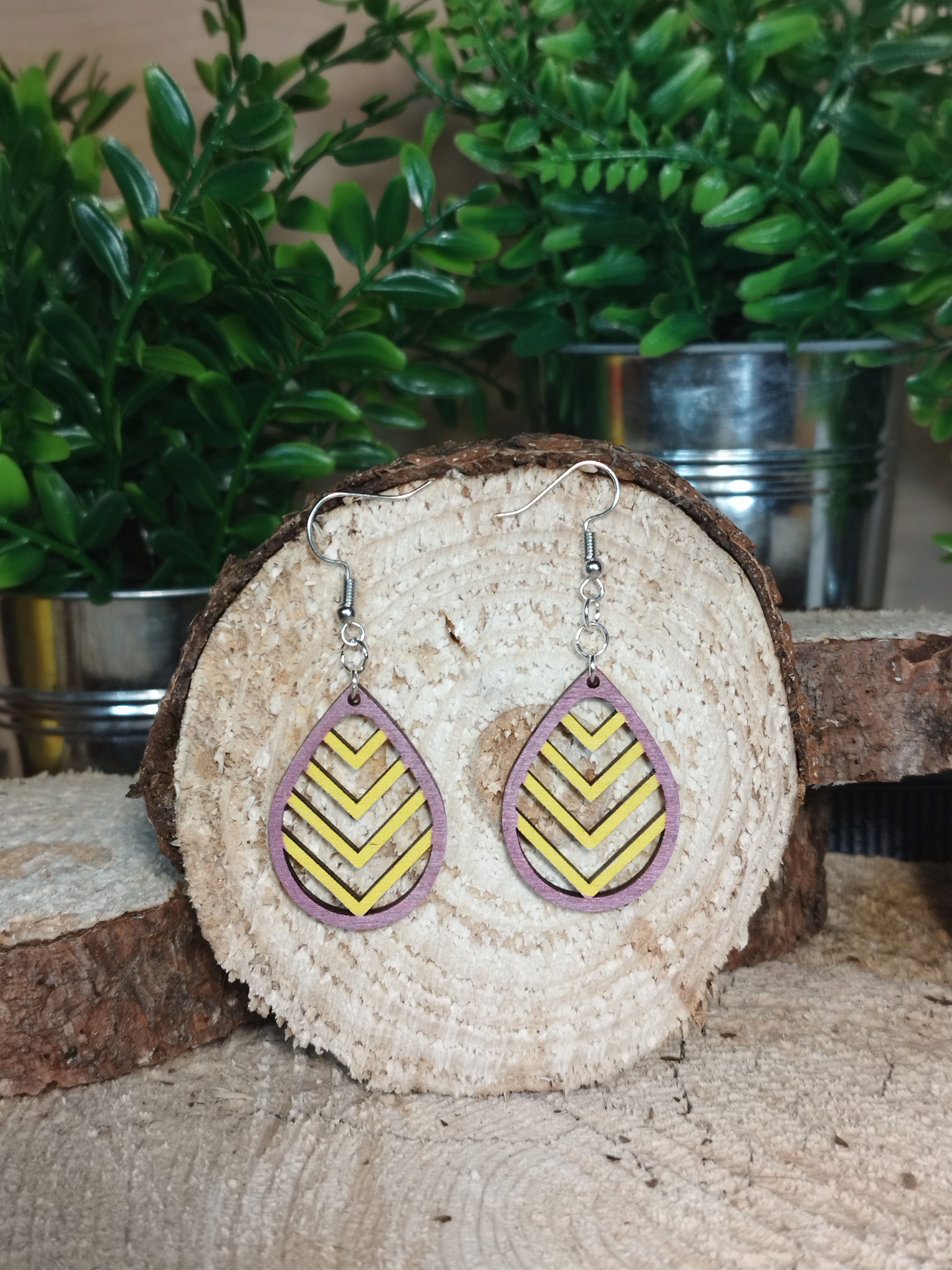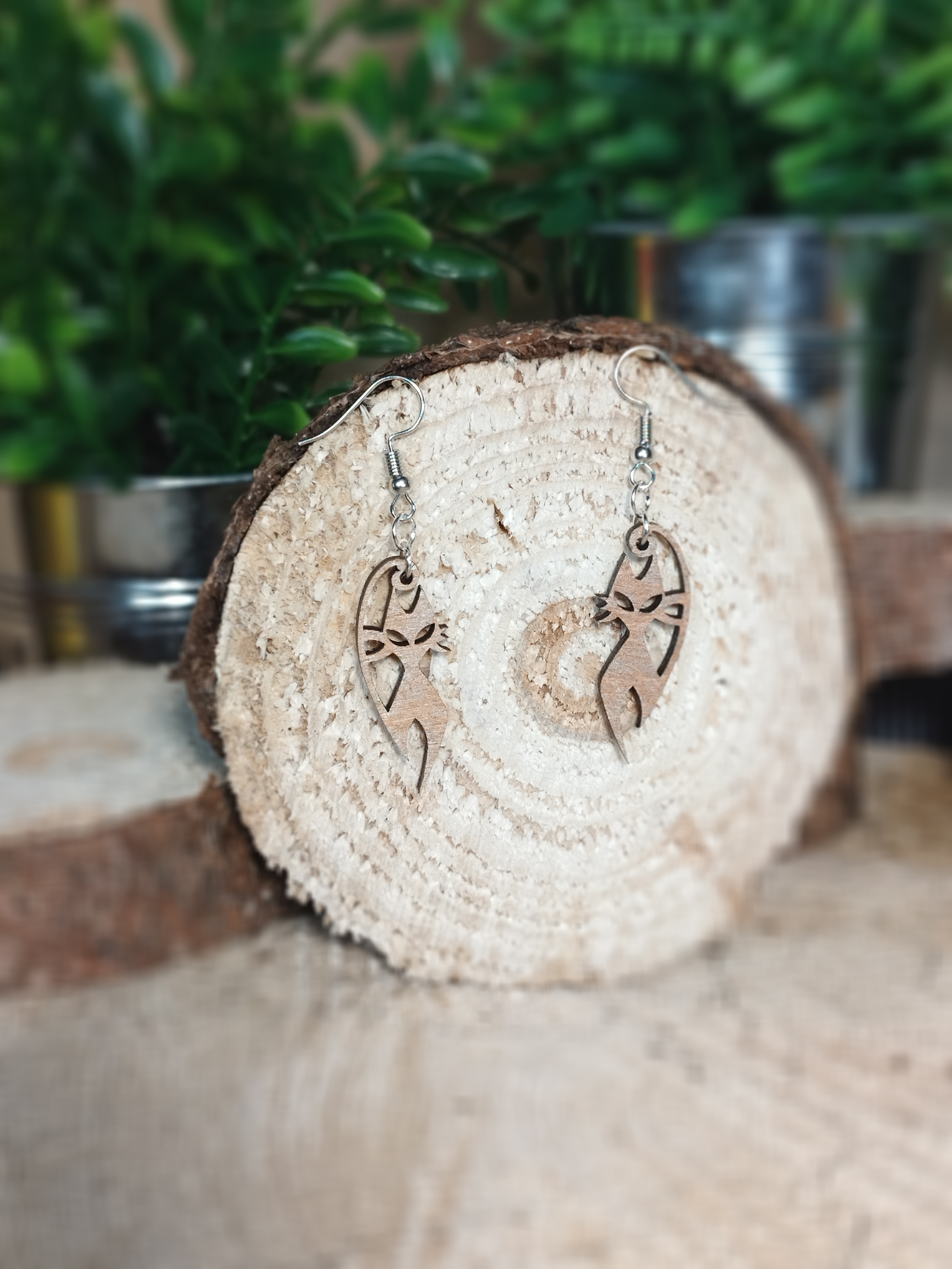 Náušnice jsou vyrobeny z kvalitní překližky a ručně malované akrylovými barvami. Každý pár je originál a může se lišit v detailech. Náušnice jsou poté ošetřeny bezpečným lakem, který dodává barvám hloubku a chrání dřevo před vnějšími vlivy.